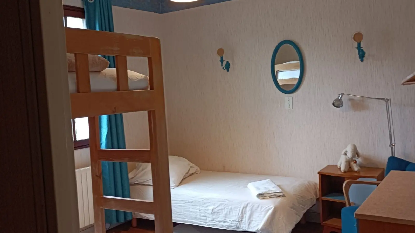 Dispone de 2 habitaciones (1 cama doble, 2 literas y 1 cama individual), una cocina, un salón con TV y Wi-Fi y un cuarto de baño con bañera.